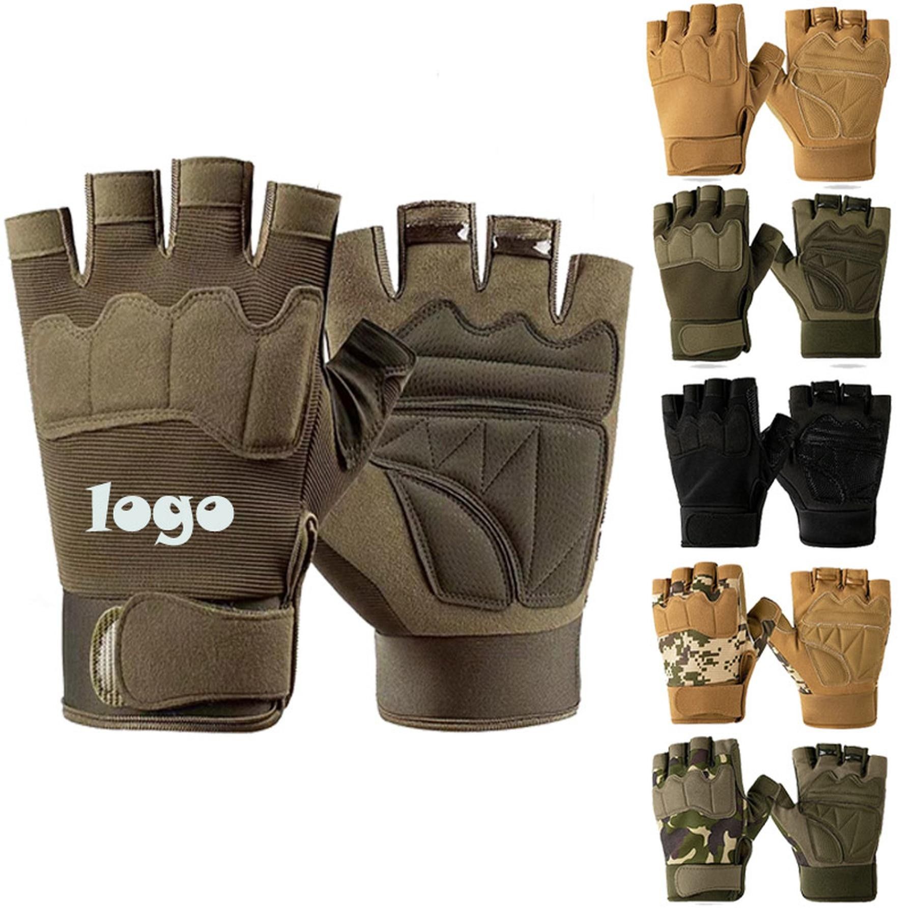 Durable fingerless tactical gloves in two sizes. Check size before buying. Made of nylon, polyester, and rubber. Reliable, breathable, anti-slip, wind, and tear-resistant. Perfect for outdoor activities. Soft, thick pads protect knuckles and palms. Adjustable wrist ring for comfort and easy removal. 8.85″ L x 4.13″ W x 0.78″ H